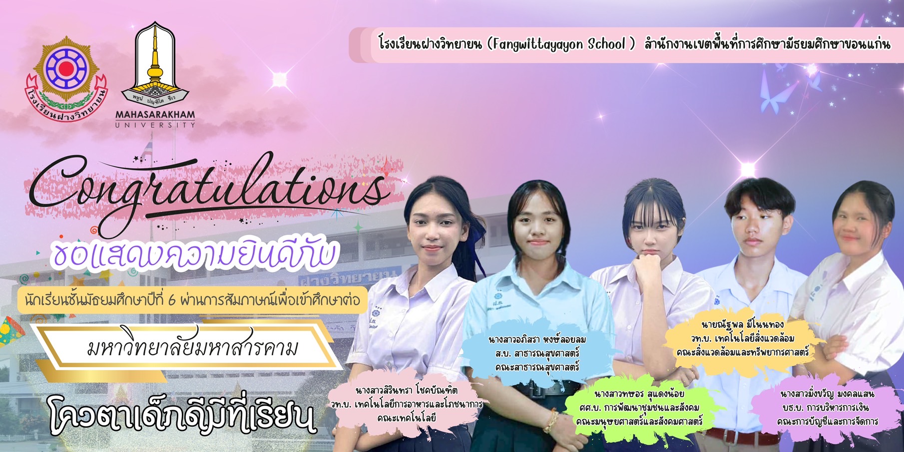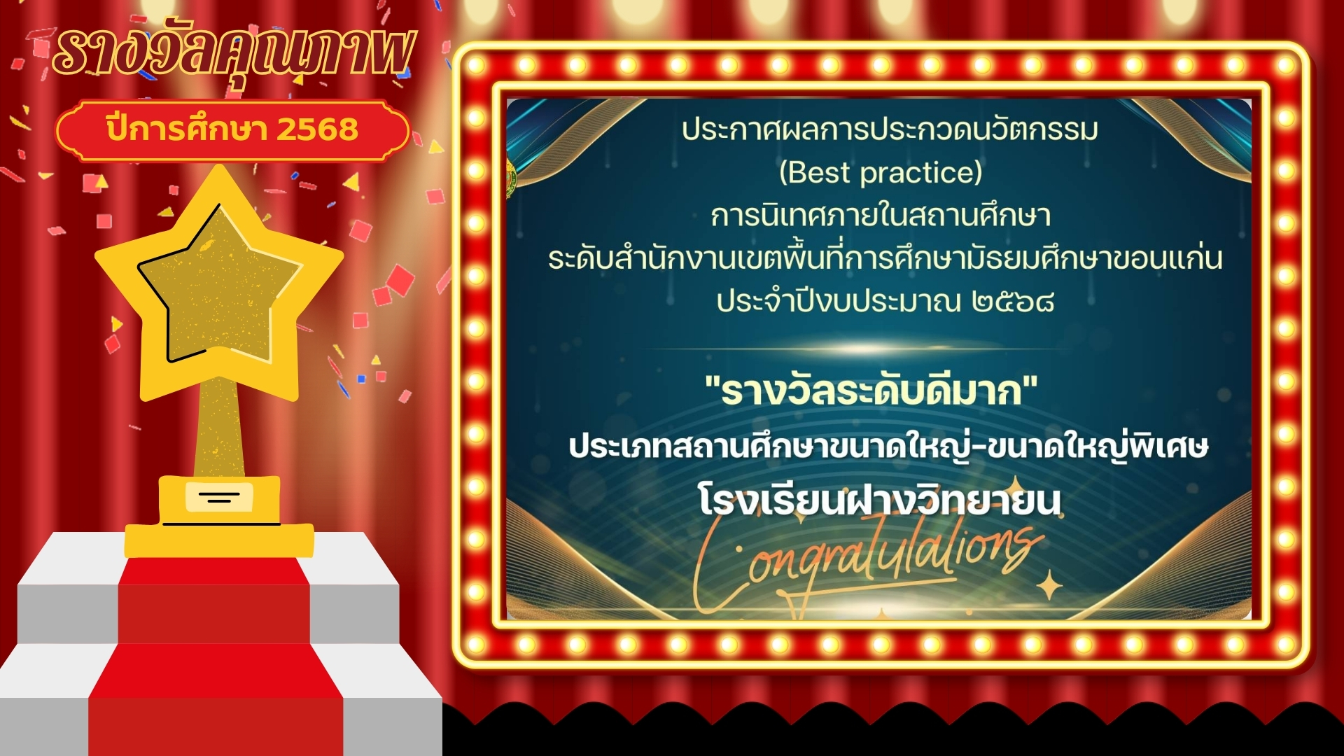 อำเภอบ้านฝาง องค์การบริหารส่วนตำบลบ้านฝาง และหน่วยงานอื่นๆให้ความอนุเคราะห์สนับสนุนด้านการศึกษา