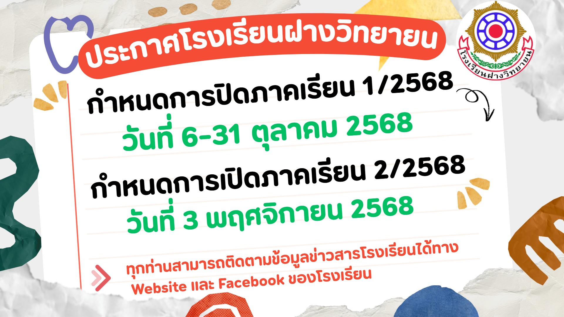 โรงเรียนฝางวิทยายน ป้ายสวยเด่นเป็นสง่า