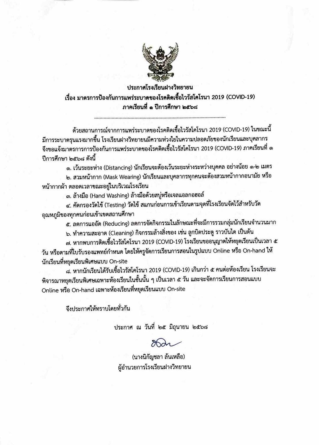 ประกาศโรงเรียนฝางวิทยายน เรื่อง มาตรการป้องกันการแพร่ระบาดของโรคติดเชื้อไวรัสโคโรน่า 2019 เผยแพร่เมื่อ: 28 มิถุนายน 2568 เขียนโดย Webmaster ฮิต: 1399 หมวด: ประชาสัมพันธ์หนังสือราชการ