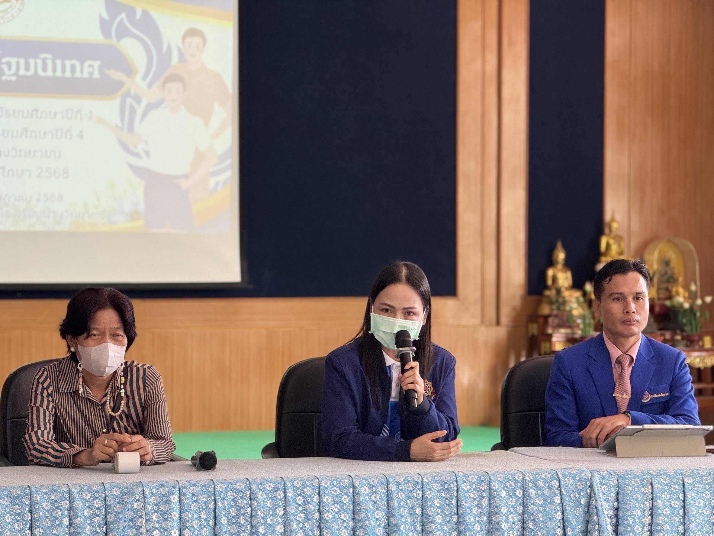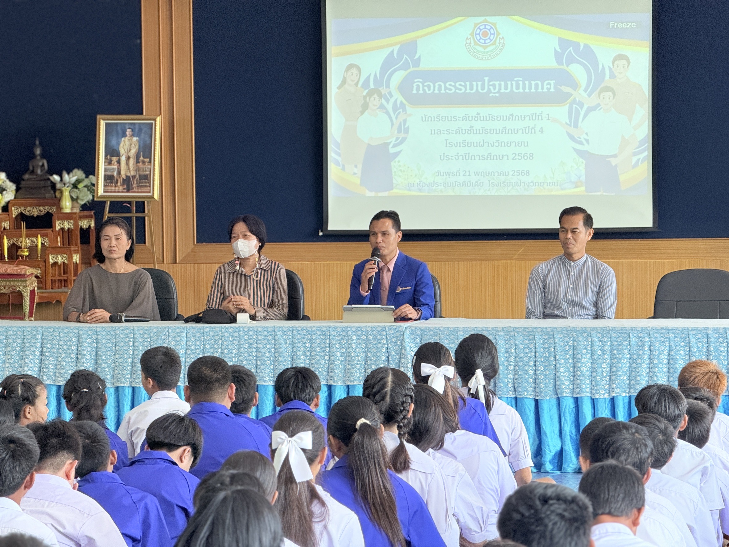 วันพุธที่ ๒๑ พฤษภาคม ๒๕๖๘ กลุ่มบริหารงานวิชาการ ได้จัดกิจกรรมปฐมนิเทศให้กับนักเรียนระดับชั้นมัธยมศึกษาปีที่ ๑ และระดับชั้นมัธยมศึกษาปีที่ ๔ ปีการศึกษา ๒๕๖๘ กิจกรรมปฐมนิเทศนักเรียนใหม่มีวัตถุประสงค์หลักเพื่อเตรียมความพร้อมและสร้างความเข้าใจให้กับนักเรียนใหม่ก่อนเริ่มการเรียนในสถานศึกษาใหม่ โดยวัตถุประสงค์สำคัญ ได้แก่: แนะนำสถานศึกษา ให้ข้อมูลเกี่ยวกับประวัติ ความเป็นมา วิสัยทัศน์ พันธกิจ และค่านิยมของสถานศึกษา สร้างความคุ้นเคยกับสภาพแวดล้อม แนะนำสถานที่ต่าง ๆ เช่น ห้องเรียน ห้องสมุด ห้องพยาบาล โรงอาหาร ฯลฯ ชี้แจงกฎ ระเบียบ ข้อปฏิบัติ และแนวทางการใช้ชีวิตในโรงเรียน สร้างความรู้สึกอบอุ่นและปลอดภัย ช่วยให้นักเรียนใหม่รู้สึกเป็นส่วนหนึ่งของสถานศึกษา ลดความวิตกกังวลและความกลัวในการเริ่มต้นเรียนในที่ใหม่ ส่งเสริมคุณธรรม จริยธรรม และระเบียบวินัย ปลูกฝังเจตคติที่ดีต่อการเรียนรู้ การอยู่ร่วมกับผู้อื่น และการดำรงตนอย่างเหมาะสมในสังคม แนะนำครู บุคลากร เปิดโอกาสให้นักเรียนใหม่ได้ทำความรู้จักกับครูประจำชั้น และบุคลากรในโรงเรียน เพื่อสร้างเครือข่ายในการปรับตัวและขอคำปรึกษาในอนาคต เตรียมความพร้อมทางด้านจิตใจและสังคม ช่วยนักเรียนพัฒนาทักษะการเข้าสังคม การสื่อสาร และการปรับตัวให้เหมาะสมกับสภาพแวดล้อมใหม่