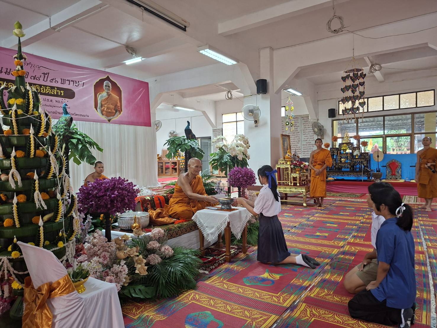 วันศุกร์ที่ ๒๘ มิถุนายน ๒๕๖๘ ดร.นิกัญชลา ล้นเหลือ ผู้อำนวยการโรงเรียน ได้มอบหมายให้คณะครูและบุคลากรโรงเรียนฝางวิทยายน ร่วมพิธีทำบุญอายุวัฒนมงคล พระครูสิริปริยัติกาล เจ้าอาวาสอำเภอบ้านฝาง วัดบูรพาราม ในโอกาสพิธีทำบุญอายุวัฒนมงคล ๗๐ ปี ๔๖ พรรษา เพื่อเป็นอานิสงส์บุญกุศล มีการเจริญพระพุทธมนต์ ทำบุญตักบาตร และถวายภัตตาหารแด่พระภิกษุสามเณร รวม ๘๙ รูป และพิธีรับมอบทุนการศึกษาให้กับนักเรียนโรงเรียนฝางวิทยายน จำนวน ๖ ทุน ณ ศาลาการเปรียญชั้นล่าง วัดบูรพาราม บ้านฝาง ตำบลบ้านฝาง อำเภอบ้านฝาง จังหวัดขอนแก่น