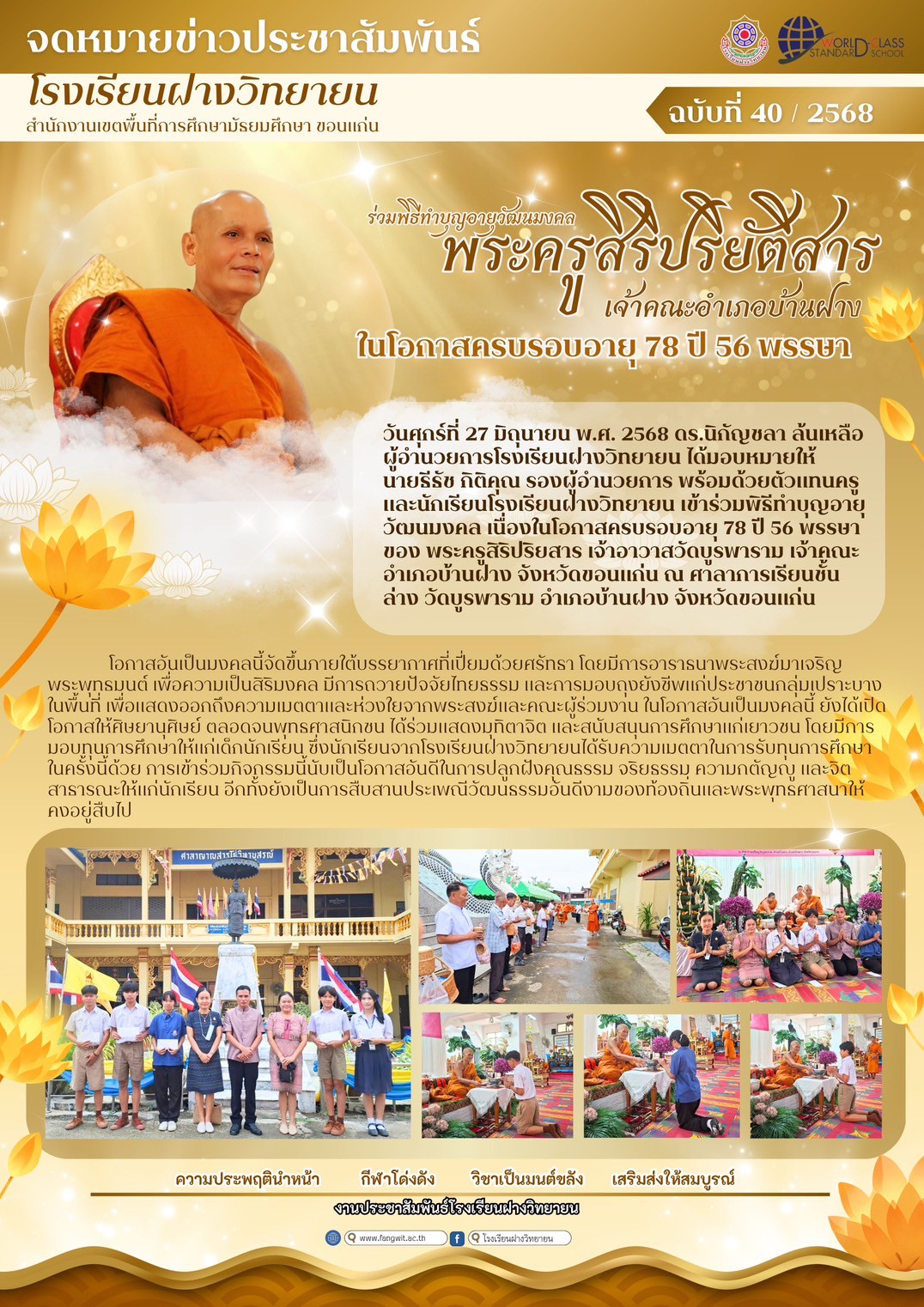 ข่าวประชาสัมพันธ์ ฉบับที่40/2568 เผยแพร่เมื่อ: 28 มิถุนายน 2568 เขียนโดย Webmaster ฮิต: 1654 หมวด: จดหมายข่าวประชาสัมพันธ์