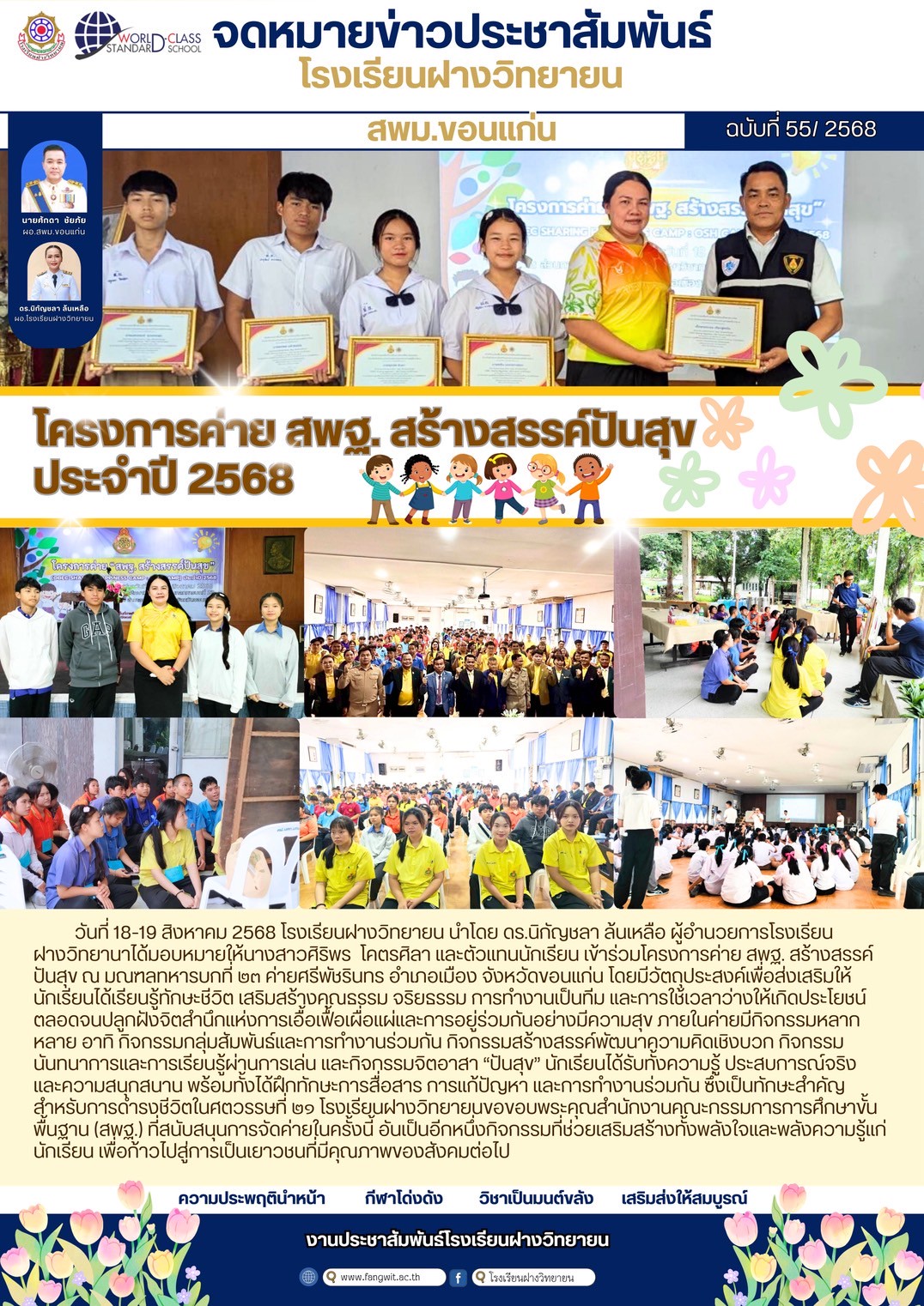 ข่าวประชาสัมพันธ์ ฉบับที่55/2568 เผยแพร่เมื่อ: 23 สิงหาคม 2568 เขียนโดย Webmaster ฮิต: 377 หมวด: จดหมายข่าวประชาสัมพันธ์