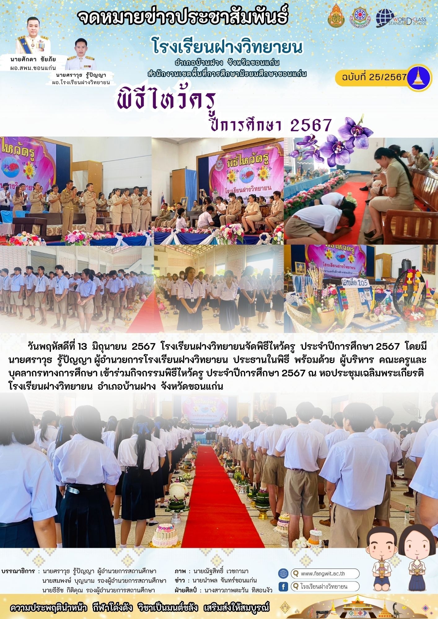 ข่าวประชาสัมพันธ์ ฉบับที่25/2567 เผยแพร่เมื่อ: 13 มิถุนายน 2567 เขียนโดย Webmaster ฮิต: 1149 หมวด: จดหมายข่าวประชาสัมพันธ์
