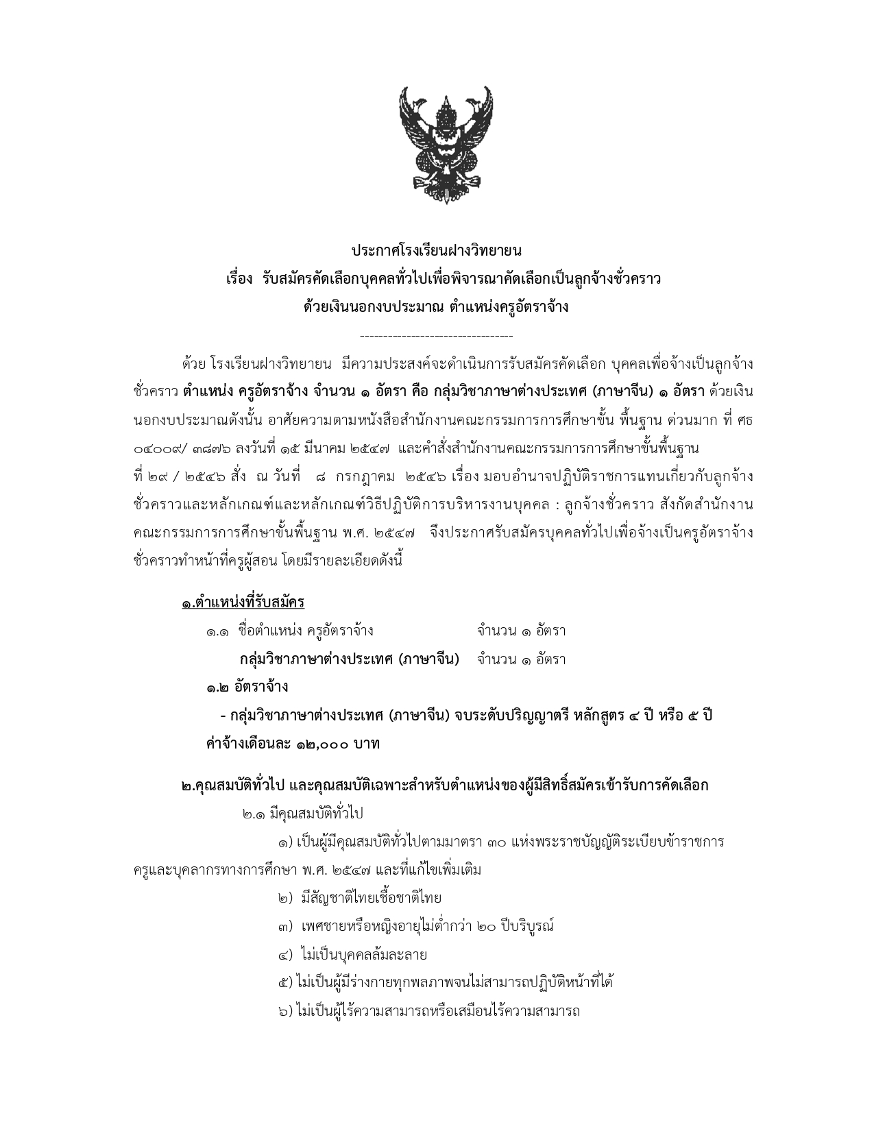 ประกาศรับสมัครครูอัตราจ้าง วิชาเอกภาษาจีน-จำนวน-1-อัตรา ตั้งแต่วันที่ 3 พฤศจิกายน 2568 (รอบ 3) เผยแพร่เมื่อ: 07 พฤศจิกายน 2568 เขียนโดย Webmaster ฮิต: 73 หมวด: ประชาสัมพันธ์หนังสือราชการ